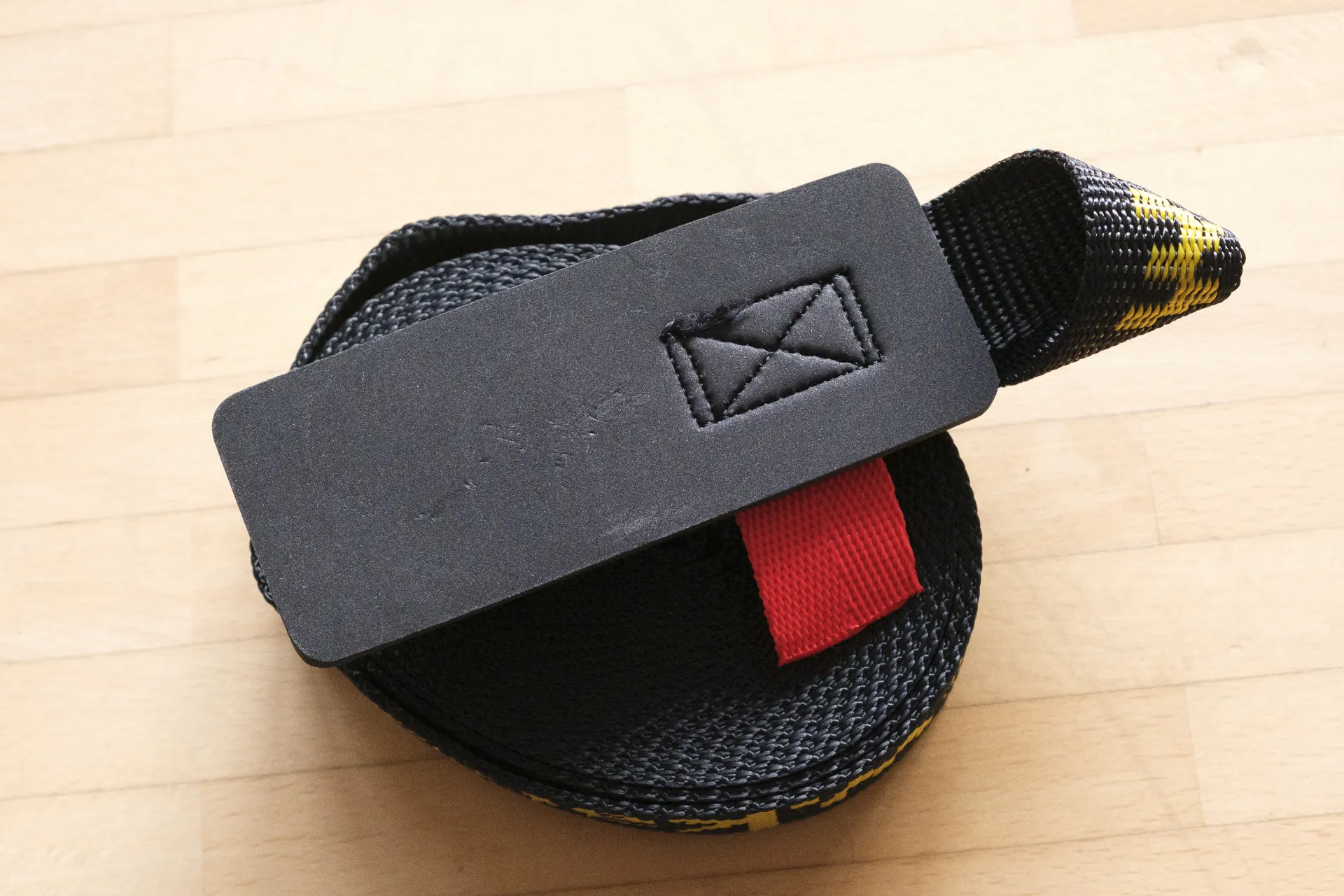 Die Gurte sind der Länge nach farblich codiert. Unter der Schnalle ist ein robustes Material vernäht, das Beschädigungen am Lack verhindert.